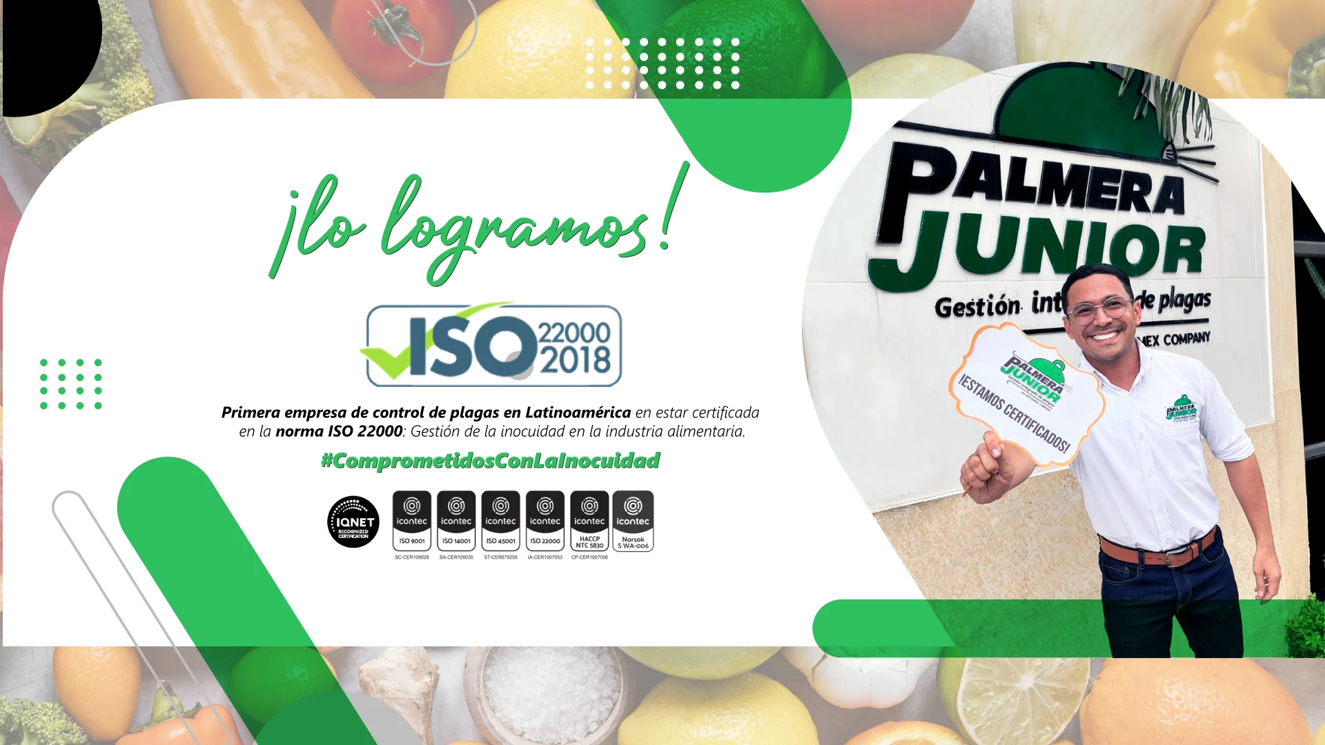 Primera empresa de control de plagas en Latinoamérica en estar certificada en la Norma ISO 22:000 Gestión de Inocuidad en Industria Alimentaria